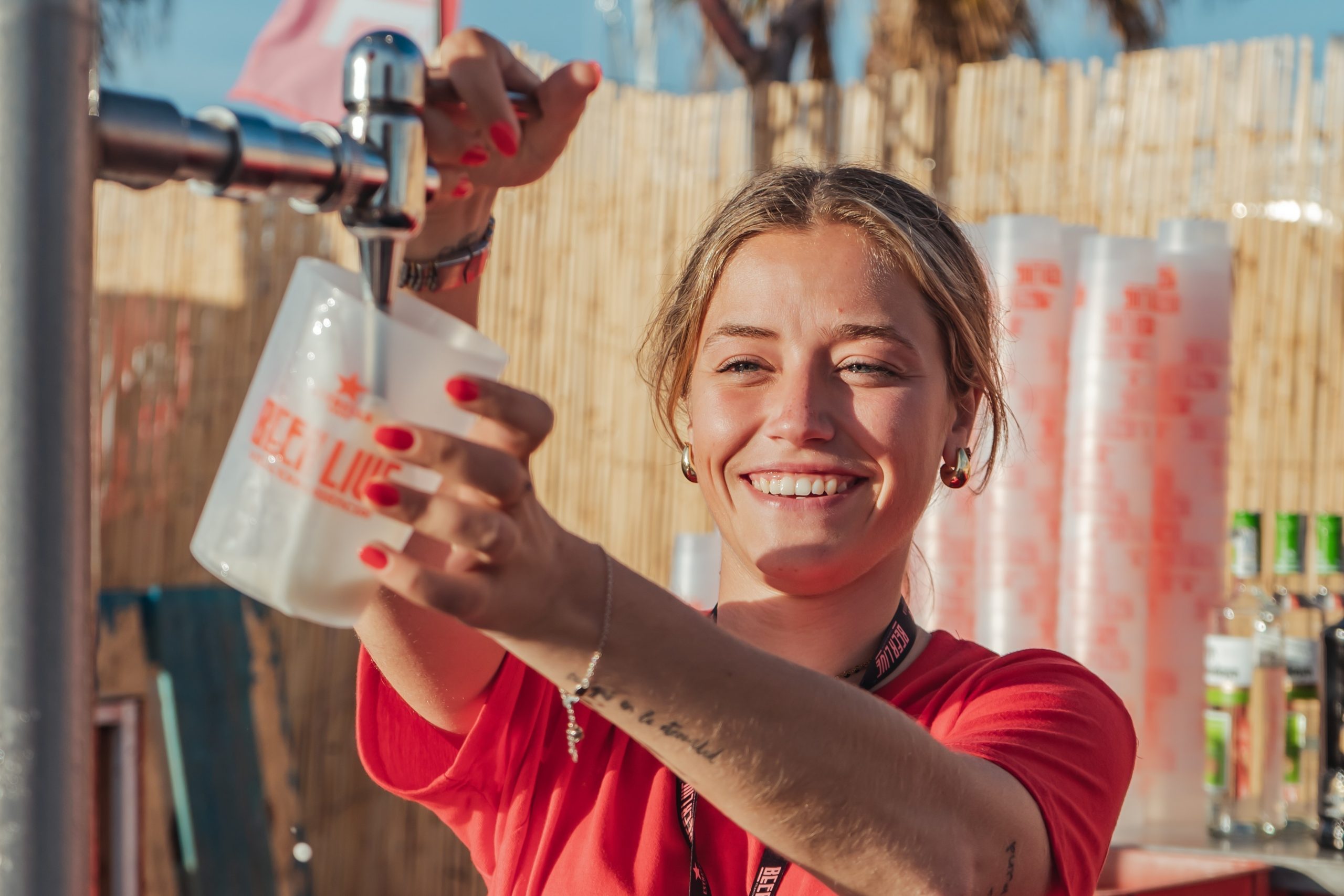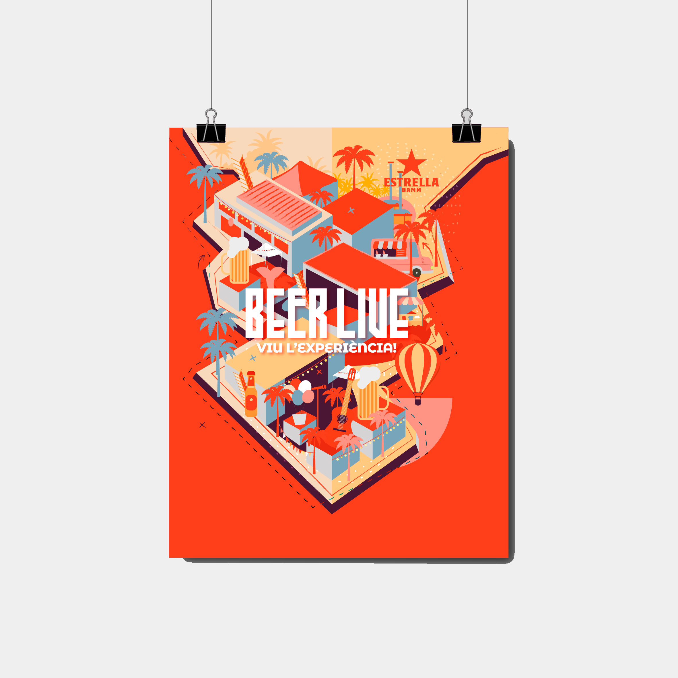 Beer Live es la Fiesta de la Cerveza Mediterránea, un festival que nace en 2023 y realiza su segunda y última edición en 2024, posteriormente convirtiéndose en Be Live. Los dos colores principales son el rojo, en honor al patrocinador oficial Estrella Damm, y el azul, vinculando la fiesta al mar mediterráneo. La tipografía divertida y festivalera se combina con este dúo de colores y una serie de ilustraciones que representan el cartel y la imagen principal.