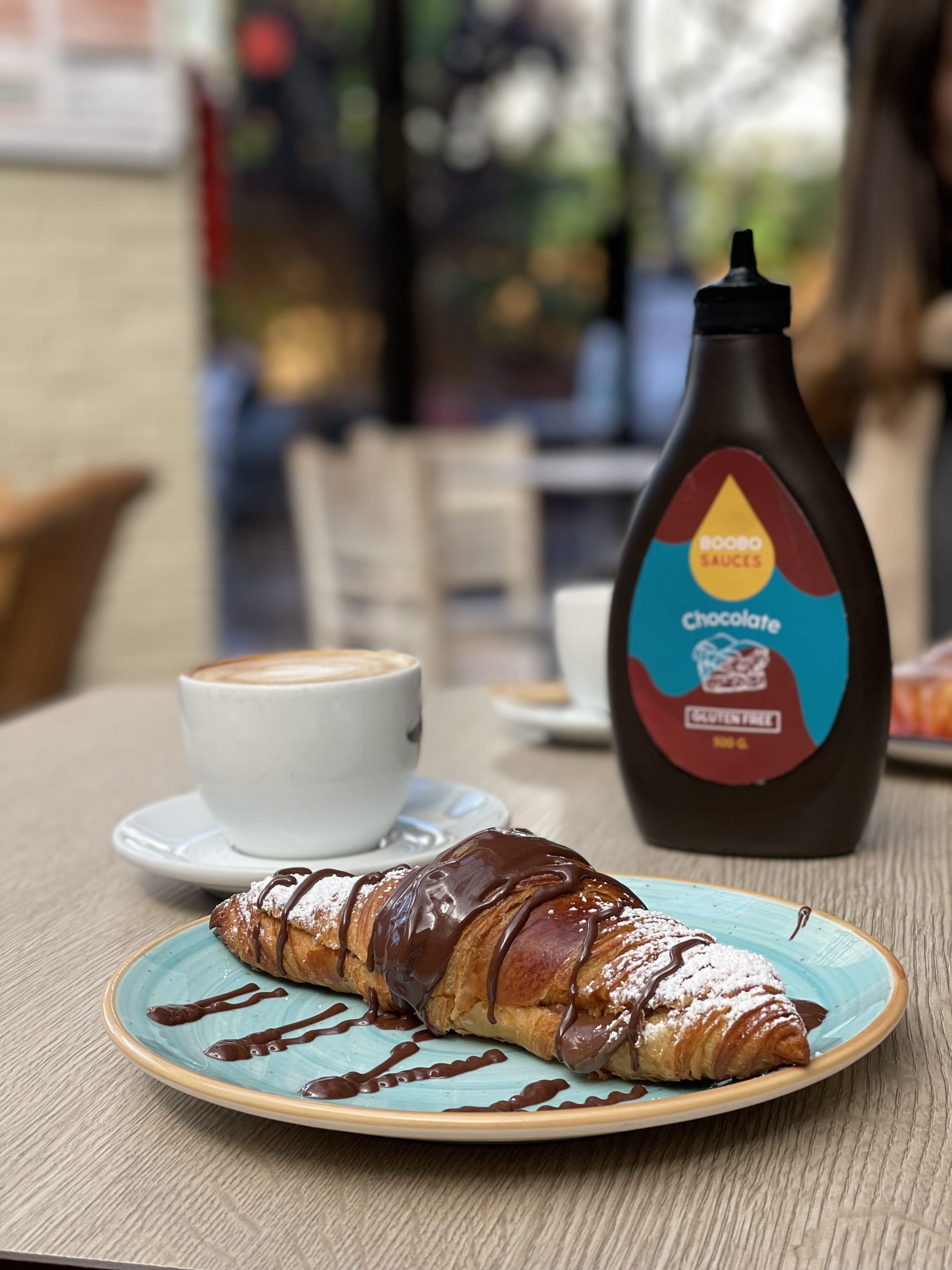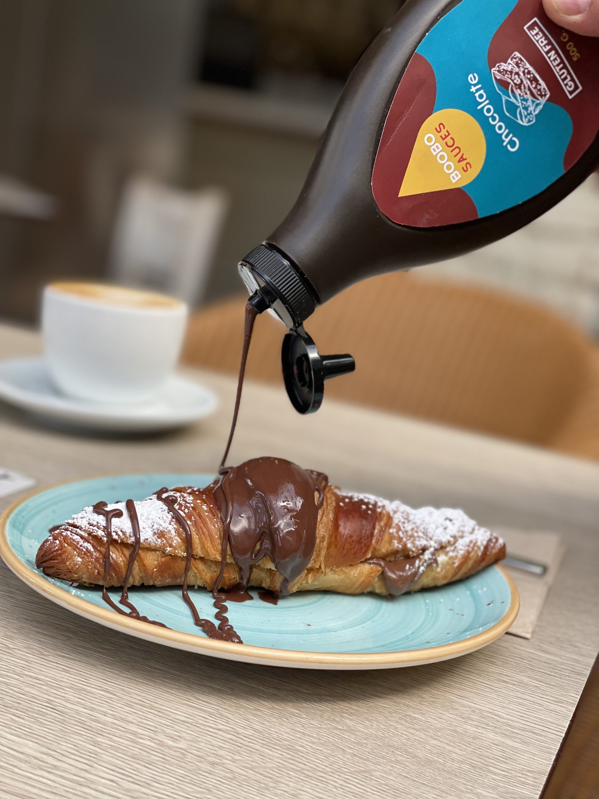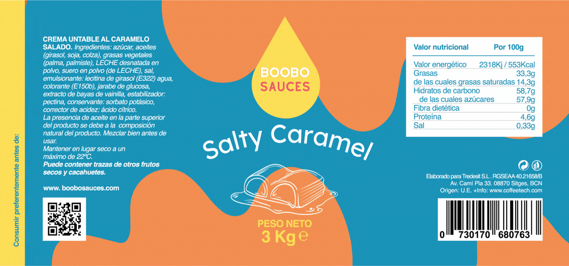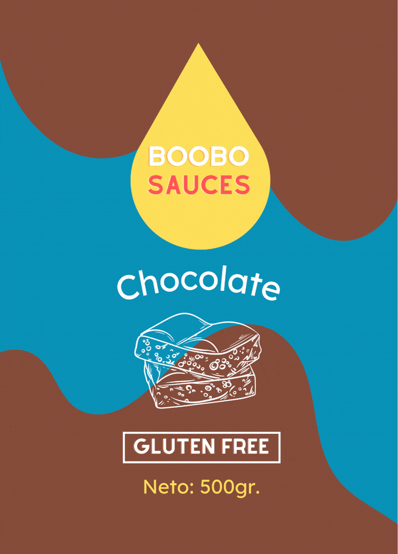 Boobo Sauces es una marca de salsas y cremas dulces artesanas que nace con el objetivo de transformar la repostería, tanto en casa como en el ámbito profesional, en una experiencia creativa e indulgente. El diseño de las etiquetas se basa en una paleta cromática vibrante y saturada que diferencia visualmente cada sabor: el verde intenso para el pistacho, los tonos terrosos y chocolate para las cremas de cacao, y los dorados para el caramelo y la galleta Speculoos.